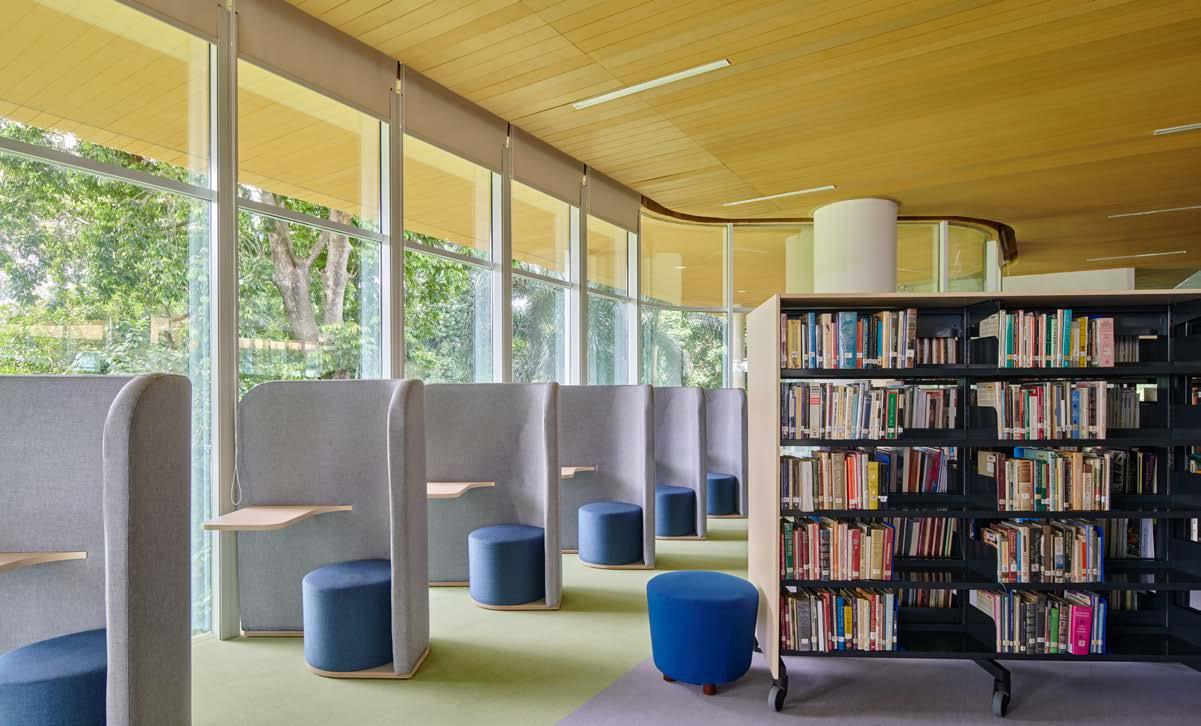Reading area by the glass windows allows nature to enter the library through sceneries