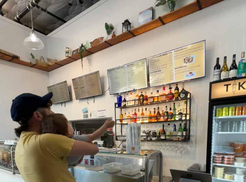 When we arrived on a Wednesday evening, there were people chowing down on burritos at the bistro tables lined up outside. Upon walking in, we were the only customers — but with dinnertime for the baby quickly approaching, being able to quickly order was welcome. Another win: It was happy hour, which runs Monday through Saturday from 3-6 pm. Pro tip: The eatery does have a high chair, but only one, so be mindful of that if it’s busy or your family needs more than one.