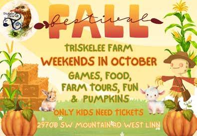 Runners of all ages will hit the streets for the annual Portland Marathon, half marathon and 10K races. Kids can join the race excitement for free with the Doernbecher Kids Run, a spectatorfriendly, out-and-back route on Naito Parkway along Waterfront Park. The kids’ race begins under the same large start arch that is used by the marathon runners. Sunday, October 6; kids race at 11:30 am. Find out more at portlandmarathon.com/info#kids_run — D.C.