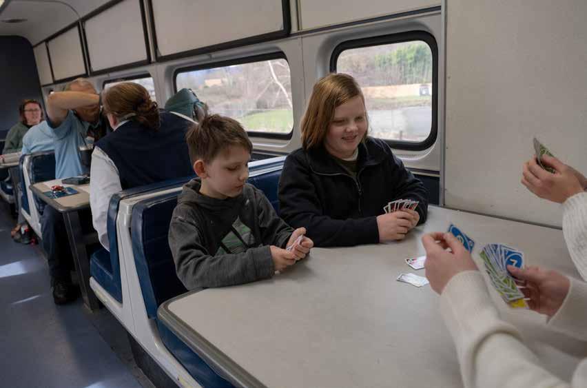 There aren’t assigned seats on the train, but a conductor will always help to make sure your family is seated together. You might be sitting two by two, or you may be lucky enough to snag a table. You can move throughout the cars and head down to the dining car to eat, grab a glass of wine or gather around a table to play Uno.