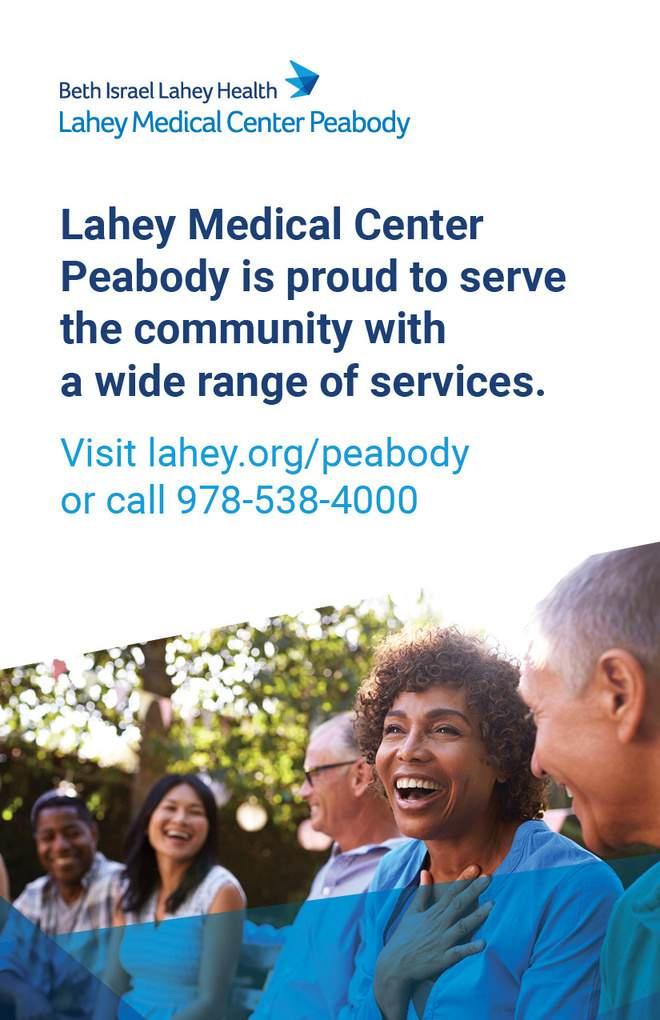 Lahey Medical Center, Peabody is a full-service, community-based hospital and medical center. Our specialty services are integrated to allow for more efficient and comprehensive care. We offer a 10-bed inpatient unit for overnight hospitalizations, a full range of diagnostic imaging services, a lab for bloodwork, an on-site pharmacy, eye care including eyeglasses and contact lenses, a hearing aid center, primary care providers, cancer treatment, a continence center, orthopedic care and much more. www.lahey.org