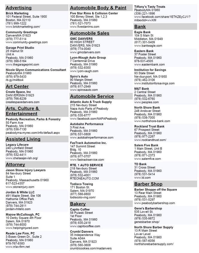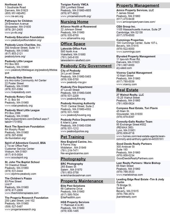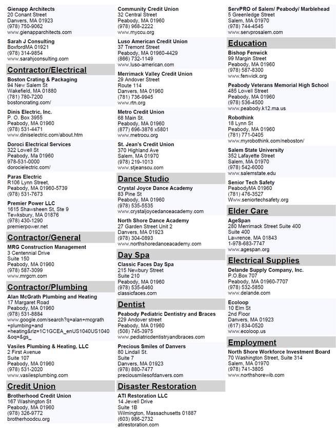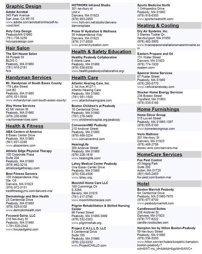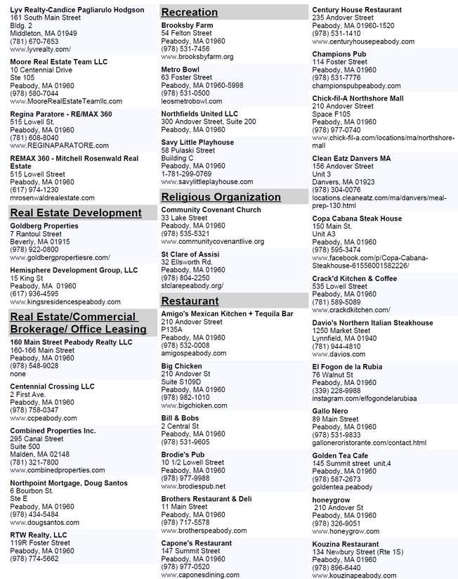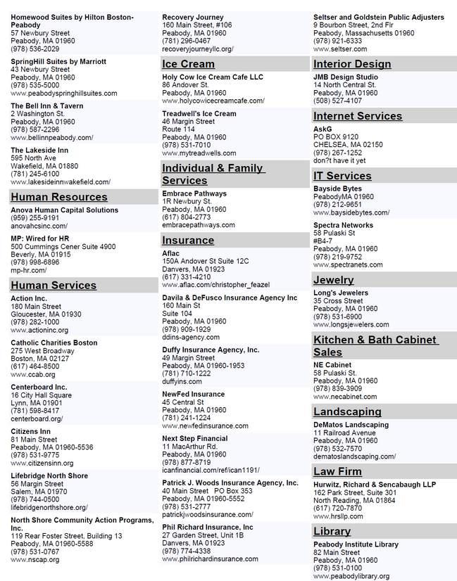 As an association of business leaders dedicated to economic vitality of our local business communities in Danvers, Lynnfield, Middleton and Peabody, the Peabody Area Chamber of Commerce focuses on issues that impact our region; including our communities, our businesses and our citizens