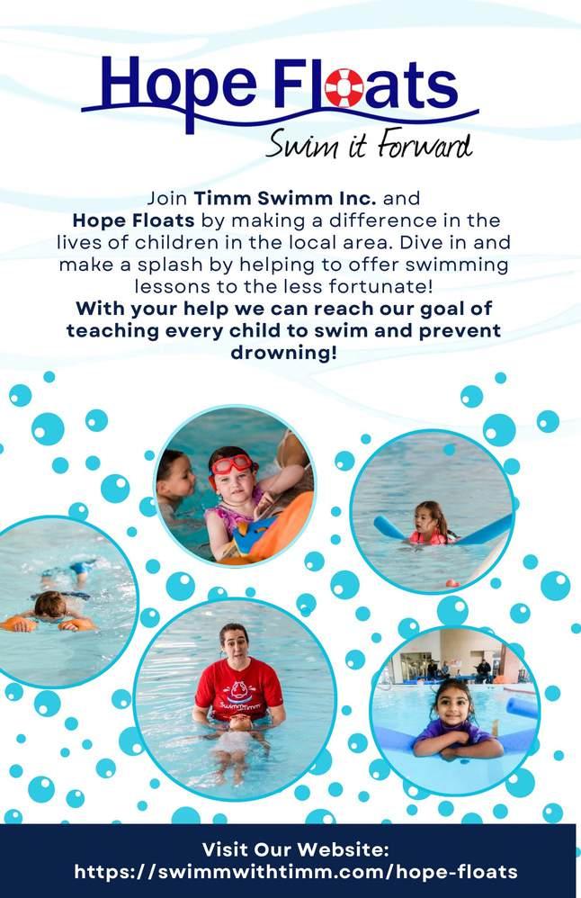Swimm with Timm is proud to partner with Hope Floats! The Hope Floats Foundation helps provide scholarships for swim lessons to children living in poverty.