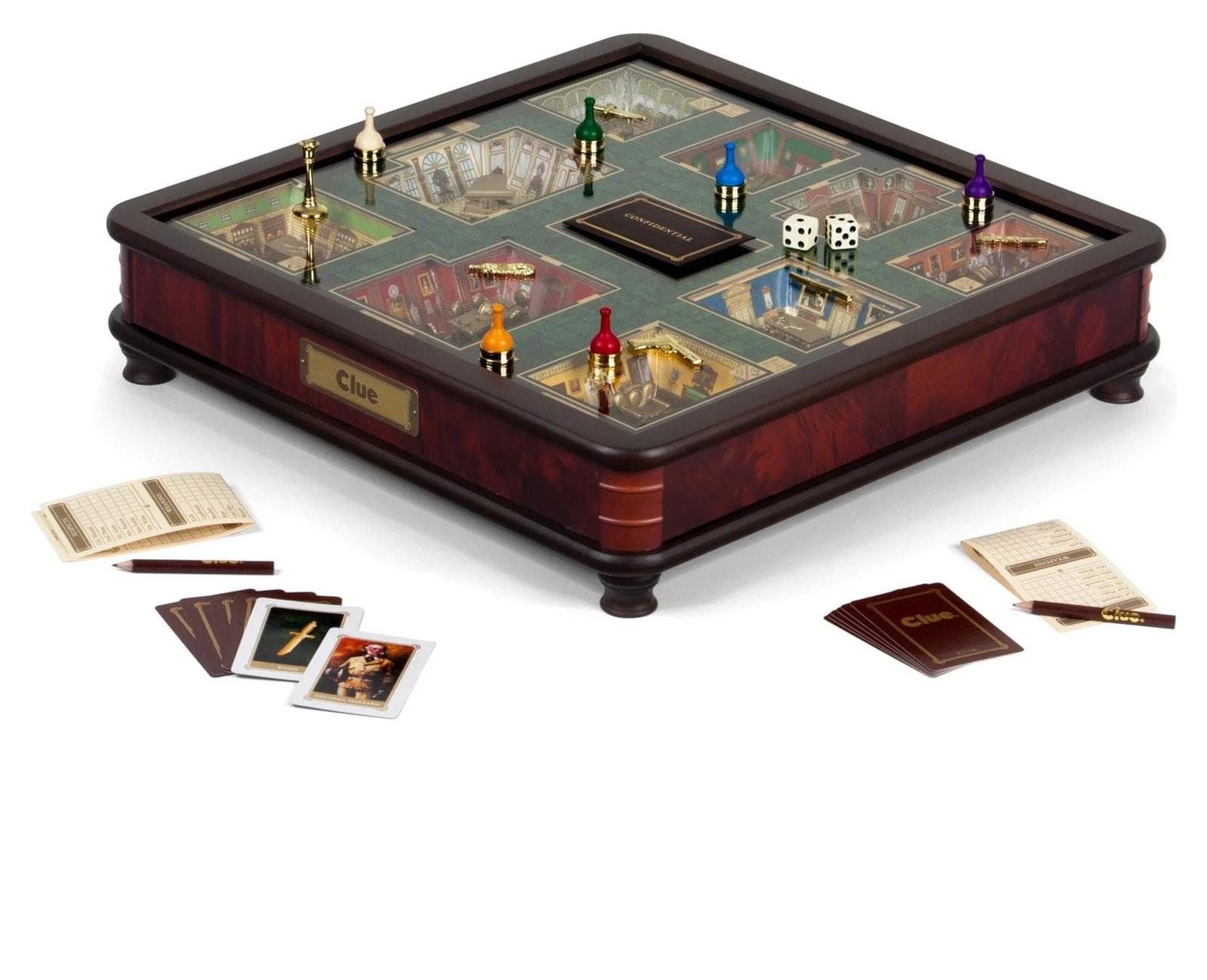 Mrs. Peacock would be impressed! This luxury edition of the beloved board game features a wooden cabinet with burled veneer, metal accents and 3D mansion rooms under tempered glass. $450
