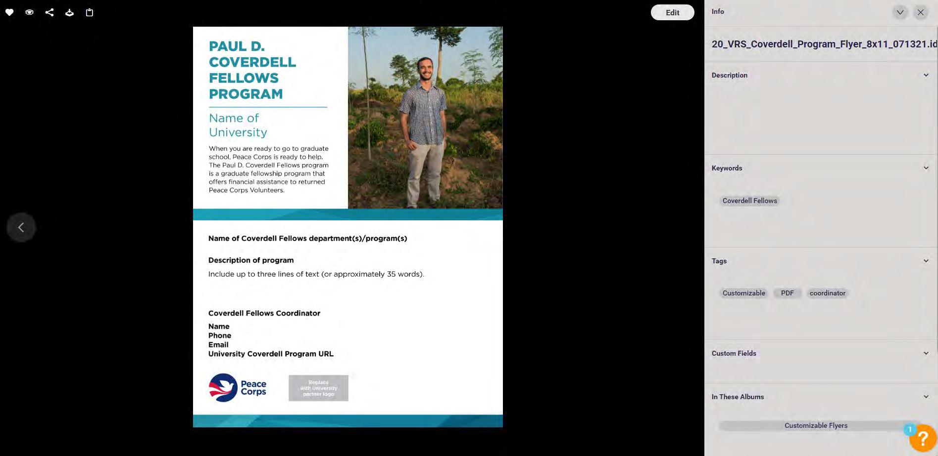 • You may use the Peace Corps logo and photography obtained in Brand Central or the media library for content directly related to promotion and recruitment for your Peace Corps program. Please do not use either for unrelated campus activities or external content.