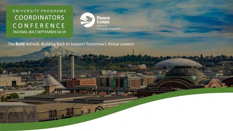 We extend a warm welcome to you all as we gather for our Peace Corps Coordinators Conference in beautiful Tacoma, Washington This occasion marks our first in-person convening since 2019, and our inaugural gathering on the west coast We trust this conference will provide you with fertile ground for fostering peer connections and inspiration and allow you to leave refreshed and excited for our collective work ahead