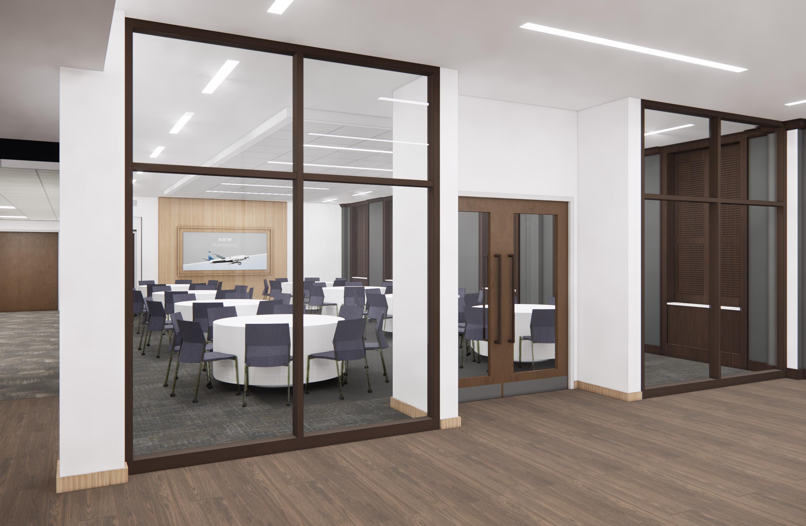 The St. Andrews Room has undergone a full transformation adding new lighting, flooring, paint, and enhanced technology for multi-use space. The original wooden shutters remain in the room honoring the past as they represent where the back of the church originally stood. We will also be debuting newly redesigned restrooms just outside Fellowship Hall off of Main Street.