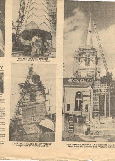 Various newspaper clippings on raising the steeple on the new c hurch.