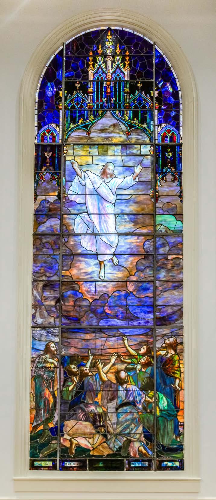Our beloved Ascension Window was removed, repaired, cleaned, and reinstalled by the great-grandson of the original designer and installer. The Ascension Window was brought forward 15 feet to remain the visual focal point.