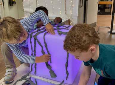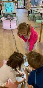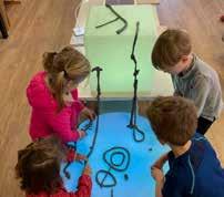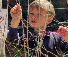 Throughout the experiences, the children encountered thresholds between the real and the imaginary. Sometimes the border was as thin as the silk web, and the children moved easily between the two worlds. Introducing new elements like the light tables and various surfaces opened up new possibilities. “I’m using the light so I can see our web.” -Chelsea “I saw a spider web at the side yard of my house. It made music by spinning his web. He’s spinning this web to a drum.”- E’Eazzen