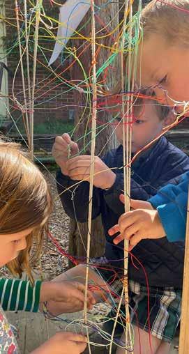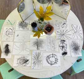 At the beginning of the year, the teachers were curious about how children encounter nature, so they began exploring outside. The children noticed the vertical patterns found in many of the plants they encountered, contributing to a desire to look closely at lines. As the children searched for lines, they came across one of the most fascinating creations in nature- a spider web! Not wanting to lose the children’s enthusiasm, the teachers invited the children to use drawing to capture the intriguing web and as a way for the teachers to watch and listen to the children’s processes. Listening to a spider and its web means pausing to look, being receptive to its suggestions, questions that arise, the mysteries it holds, and the beauty that multiplies with each encounter.
