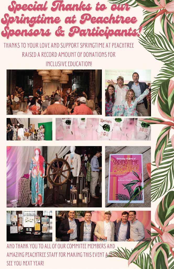 A HUGE thank you to all who gave so generously of their time and talents for Springtime at Peachtree! It was a huge success and so much fun!. The Preschool’s Inclusion Program will benefit greatly from the money raised at the event. Thank you especially to our Springtime at Peachtree Committee, and specifically the chairs, Colleen George and Erin Istanbulluoglu. The Committee worked tirelessly on this amazing event – from the “Celebrating Ten Years of Springtime” beautiful décor to the band and the once-in-a-lifetime auction items, Springtime was a hit!