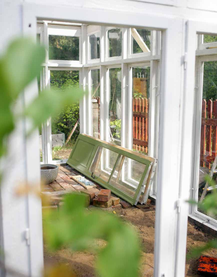VALOKUVAAJA, ARTESAANI VIRPI LEHTINEN RAKENSI KASVIHUONEENSA ITSE. HAMSTRAAMINEN ALKOI HYVISSÄ AJOIN JA KILKE KUULUI. VÄLILLÄ ÄRRÄPÄÄTKIN RAIKASIVAT, MUTTA KASVIHUONE VALMISTUI KUIN VALMISTUIKIN – JA SIITÄ TULI UPEA!