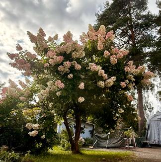 Eijan pihalla Rauhalassa kasvaa monikymmenvuotias syyshortensia, joka on jo melkein nähtävyys. Puun mittoihin kasvanut pensas saa ohikulkijat pysähtymään ja nappaamaan kuvan – eikä ihme, sehän on kuin suoraan satukirjasta. Kasvaako sinun pihallasi vielä komeampi? Ilmianna itsesi Pikkukaupungin toimitukseen!