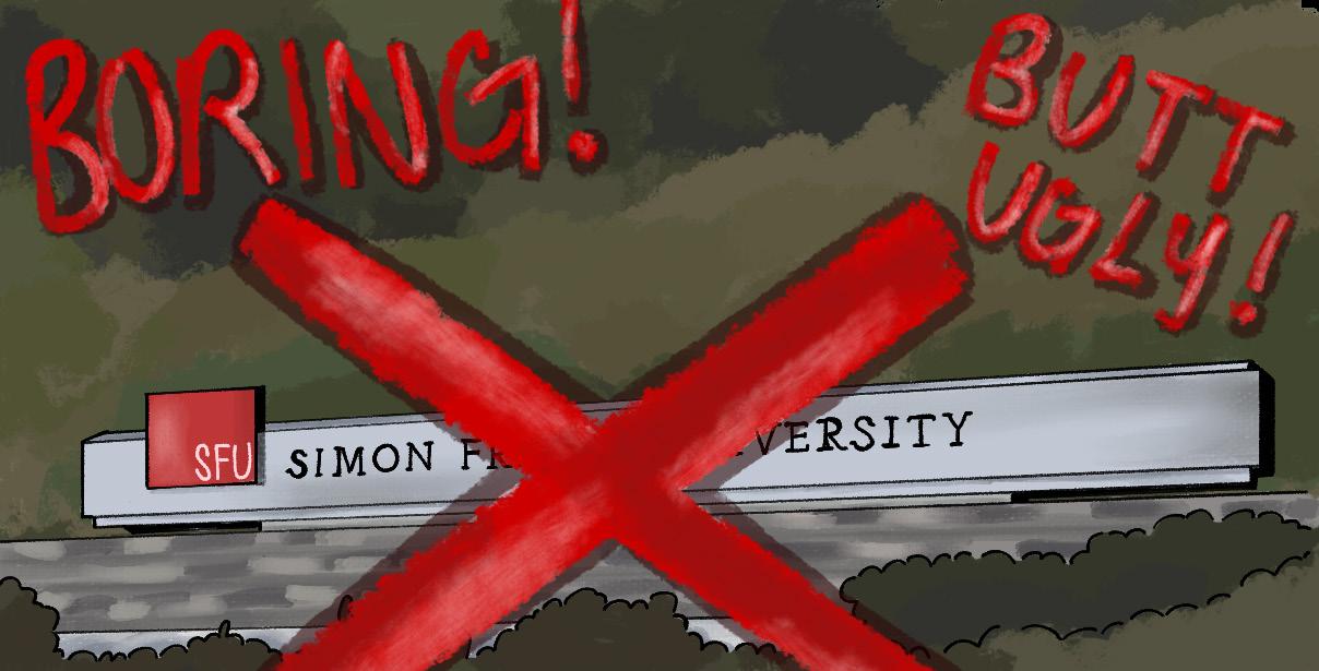 Perhaps it’s time for a redesign that better reflects the SFU experience in its full glory. With zero budget, minimal artistic expertise, and a heavy dose of metaphor, enter: our top five visionary contenders for replacing our #boringsign.