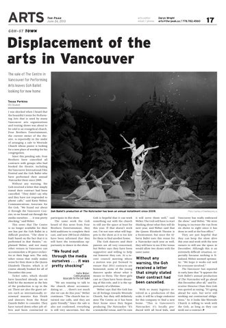 Vancouver has really embraced the show,” said Weber. “We were hoping to increase the run from six shows to eight since it has done so well at the box office.” They are just hopeful that they can keep the show alive this year and work with the new owners to still use the space in December. Although this is an extremely difficult situation, especially because nothing is finalized, Weber seemed optimistic: “We hope it works out well for everyone involved.” The Vancouver Sun reported in early June that “It appears the Goh Ballet’s annual production of The Nutcracker will go ahead this December after all,” and Executive Director Chan Hon Goh was quoted as saying, “It’s going ahead for sure, but we’re still working out contractual obligations.” So it looks like Westside Church is willing to work with the Goh, as long as they can work out a contract.