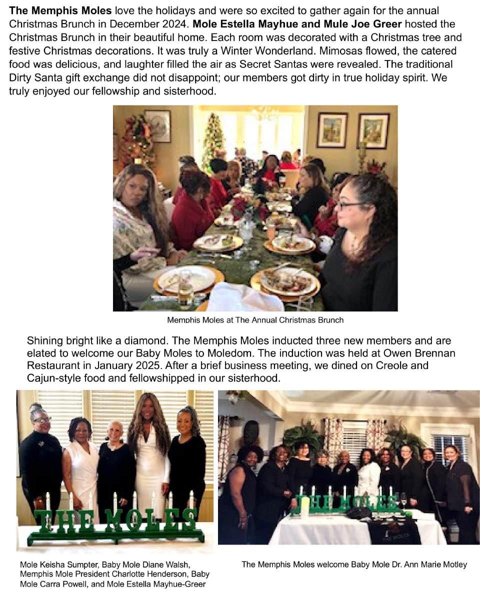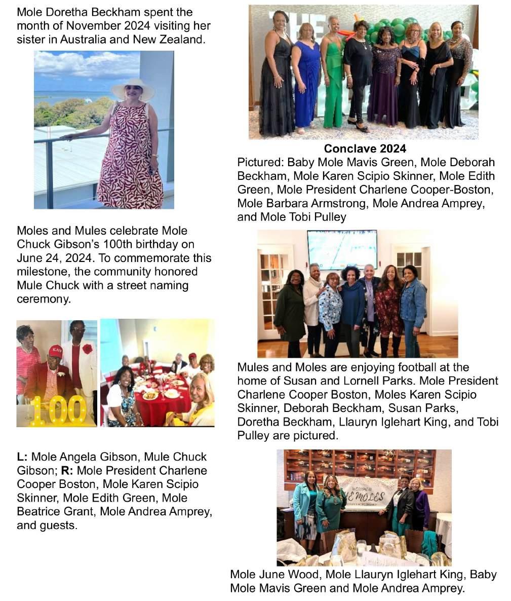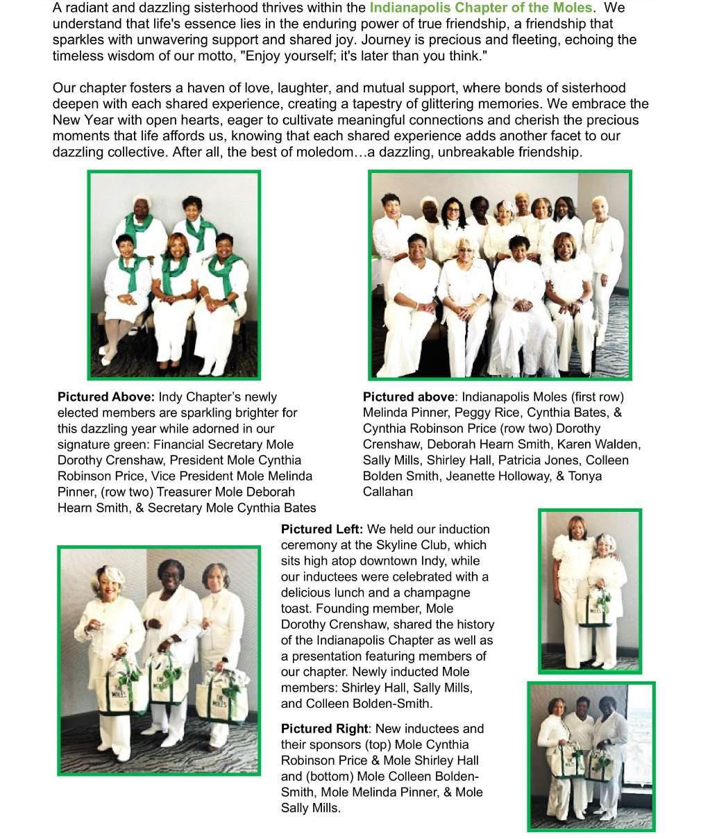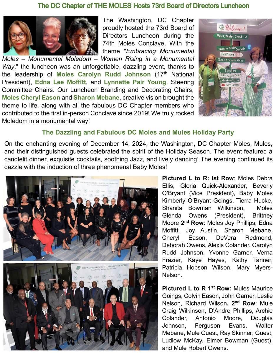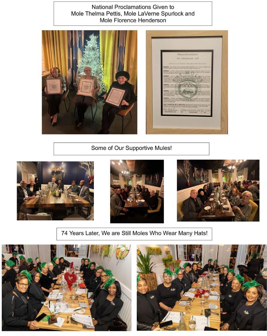 Our membership continues to grow with like-minded women who are community leaders. They work tirelessly to improve the lives of citizens in their cities, counties, and states, particularly by enhancing the conditions of women. They also understand the importance of "feeding their souls" and taking time to enjoy themselves with friends and family. This defines who we are as MOLES. In the following pages in this 75th Anniversary issue of The Molerama, see how your sisters celebrated this "Dazzling Diamond 75th Anniversary" year.