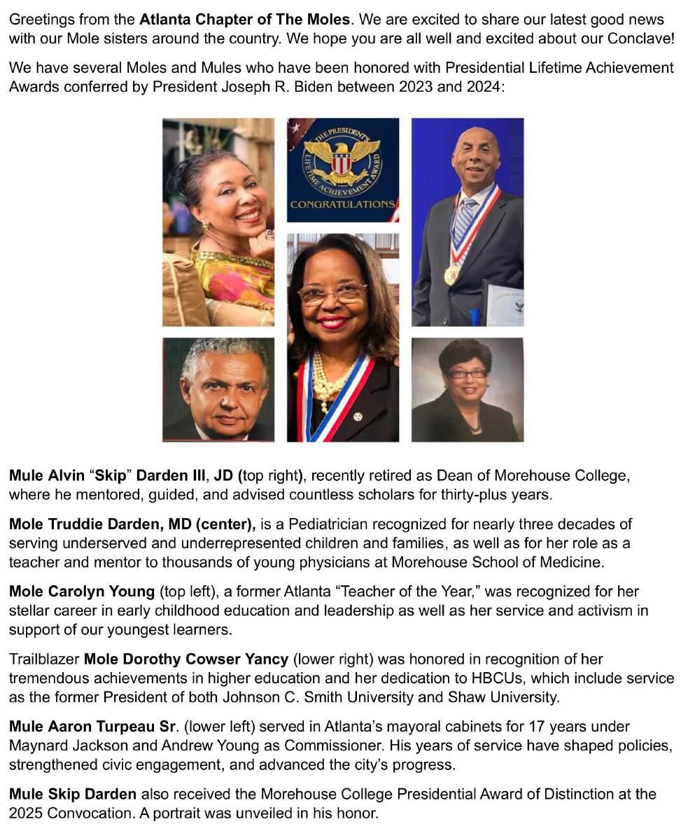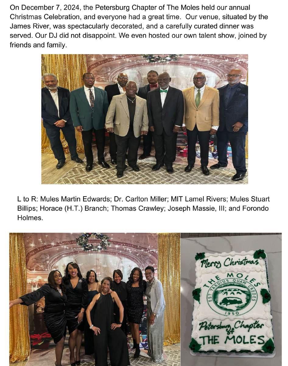 The Wilberforce Chapter of THE MOLES sadly announces the passing of our dear Mule Clinton "Clint" J. Brown on February 25, 2025. He is survived by his wife, Mole Jacqueline Harper Brown, his children, and many family members, friends, and colleagues who will miss him greatly. Mule Clinton "Clint" J. Brown was a respected Dayton community member known for contributing to his family and organizations.
