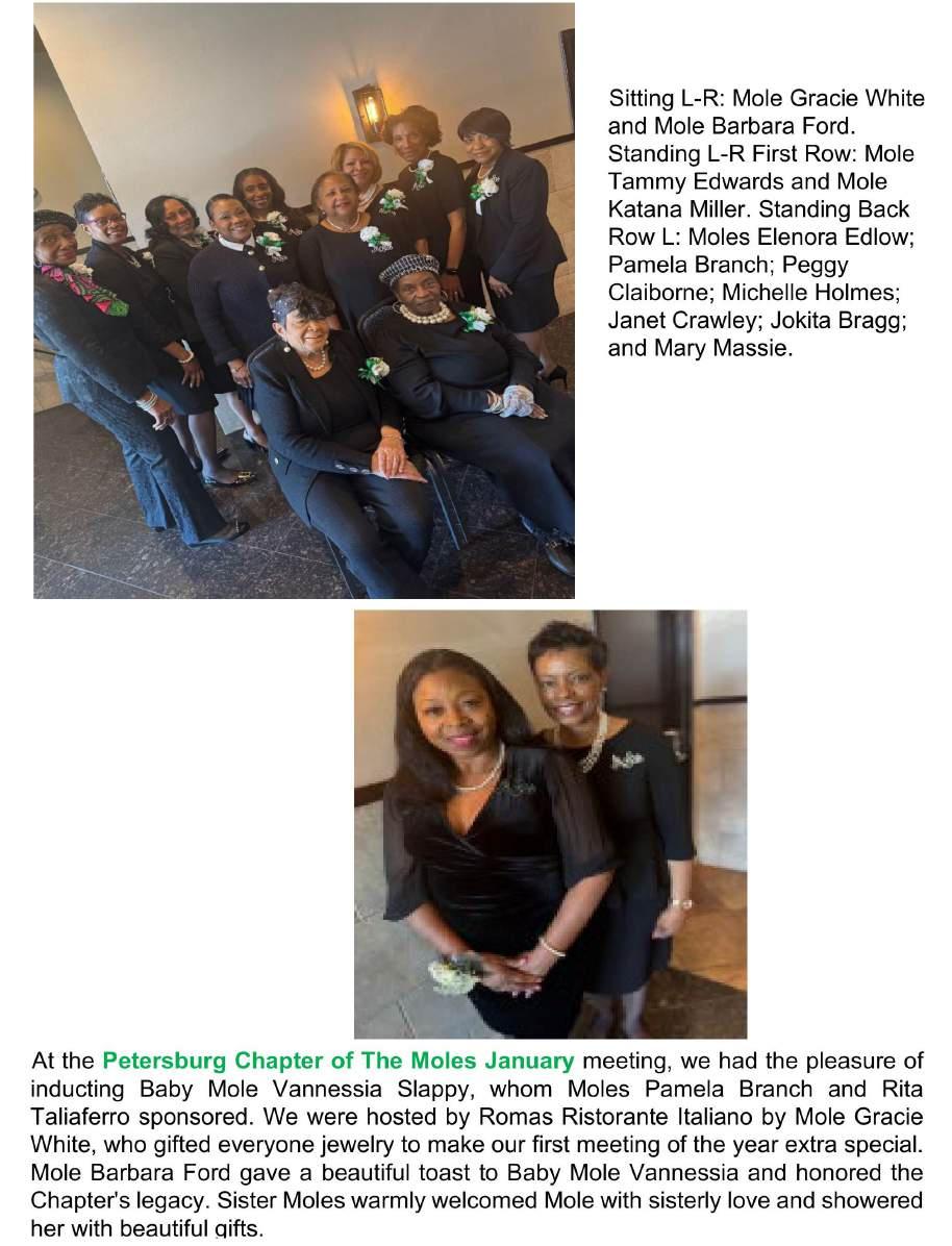 It is with great sorrowthat the Rocky Mount Chapter of THE MOLES shares the passing of Emerita Mole Sylvia Pretlow Myers, who transitioned from earth to her heavenly home on Wednesday, July 31, 2024.