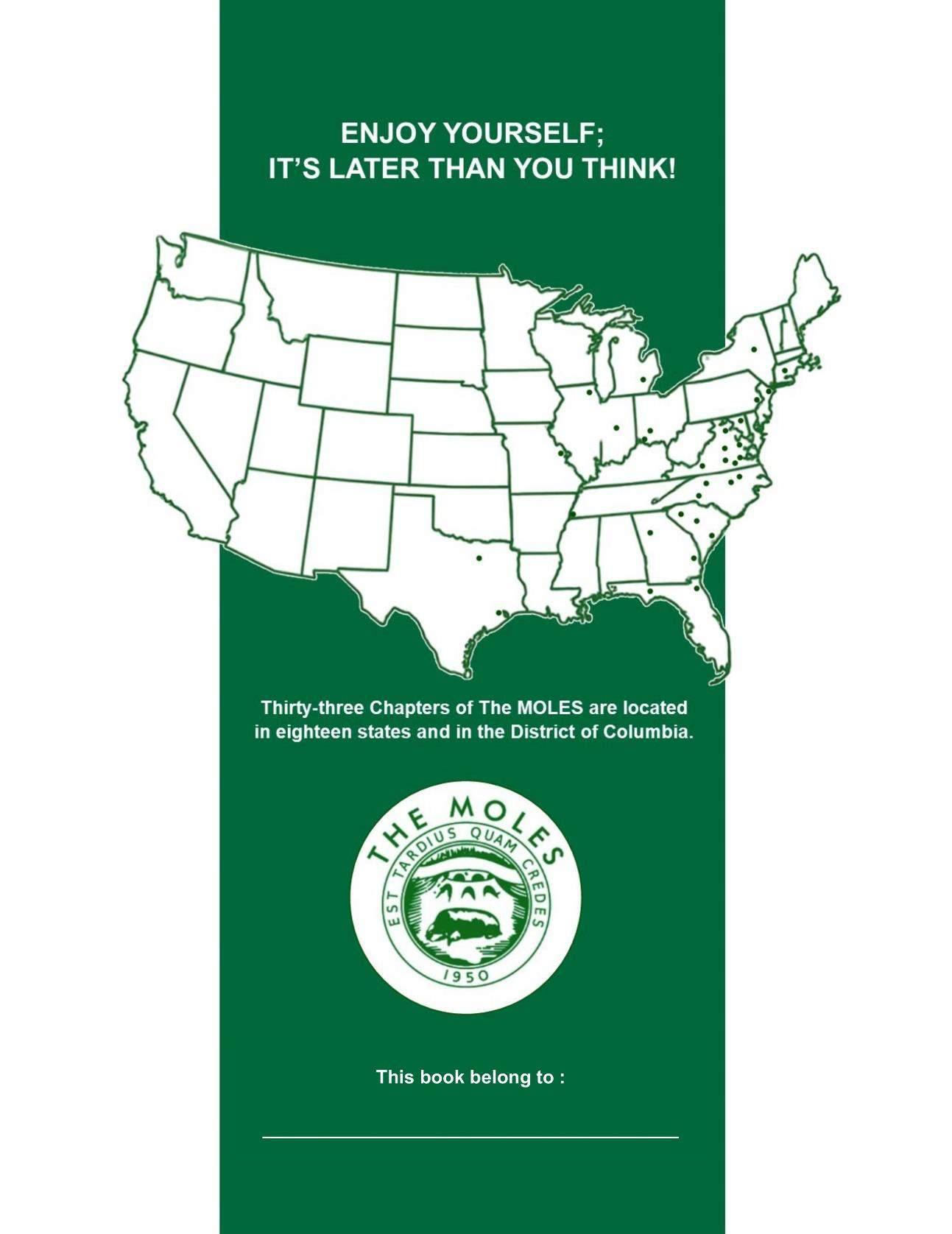 My Dear Sister Moles, Seventy-five never looked so good! That's right, THE MOLES are 75 years old, growing stronger, and our future is bright. Our founders never envisioned that a simple gathering of friends playing cards would develop into a sisterhood of nearly one thousand women with chapters across this country.