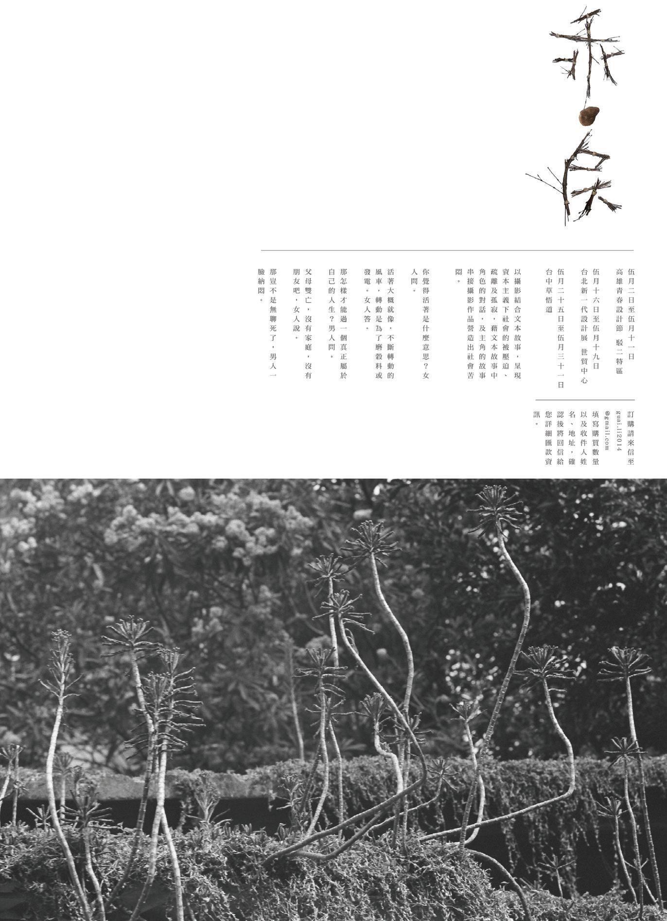 聯展型式尋找同好一起辦展,而宣傳 海報則以學妹的攝影作品為主,她使 用是反轉片,拍出以紅色調為主具延