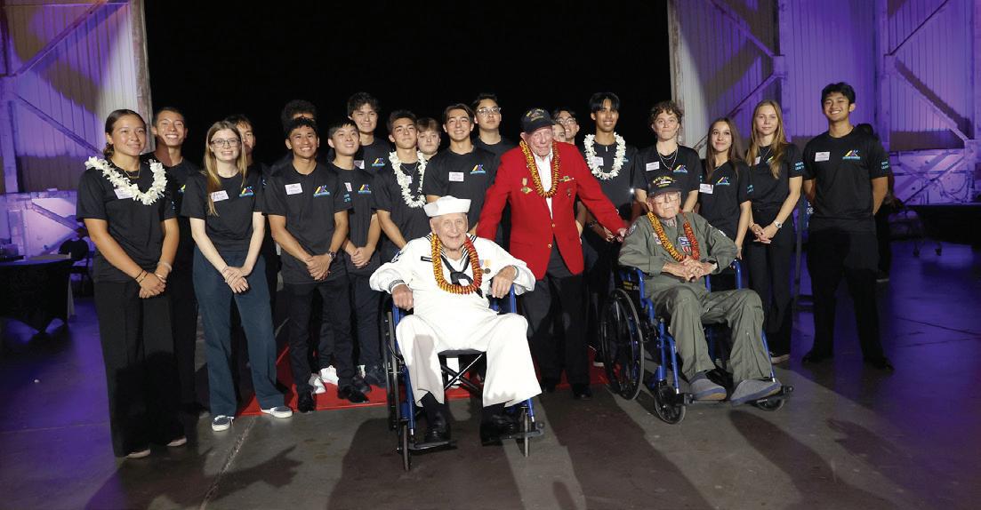The night began with a beautiful performance of the national anthem and Hawaii Ponoi by the talented Farrington High School choir. A heartfelt tribute to veterans followed, honoring Susan Page Coffee, wife of the late POW Captain Jerry Coffee; Captain Jim Hickerson, USN (Ret.), a Vietnam Veteran and former POW, and his wife, Carole Hickerson, who played a key role in the POW-MIA movement; Iwo Jima Veteran Corporal Don Graves, USMC (Ret.); Petty Officer 3rd Class Allan Chatwin, USN (Ret.); and 8th Air Force Flight Engineer John Gleeson, U.S. Army Air Forces. These heroes received an emotional standing ovation, followed by a patriotic medley sung by Jordan Segundo.