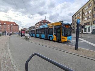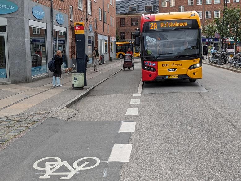 Adjacent to its cycle-only paths, Copenhagen features two types of bus stops: those with an island between where the bus stops and