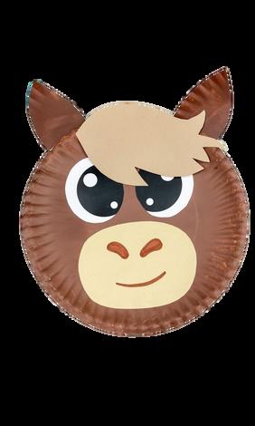 Paper plates, brown paint, paintbrush, white card stock, colored card stock, glue stick, brown marker, and scissors.