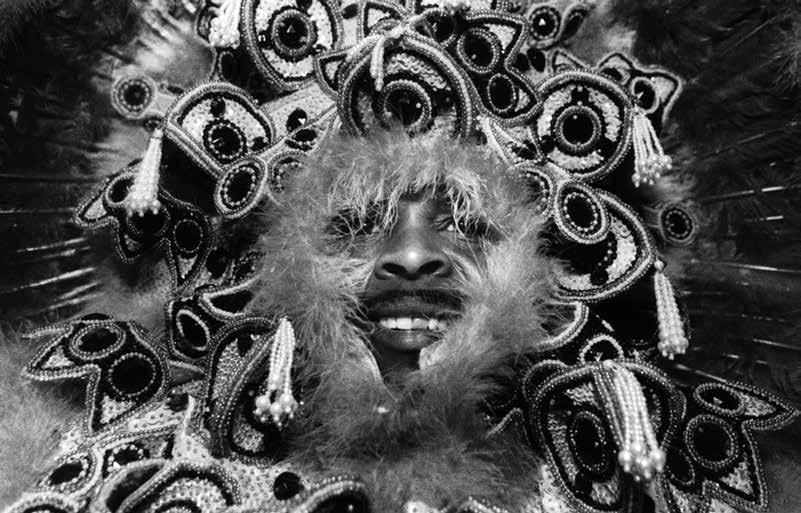 in New Orleans in 1990. Frank Hopper, the flag boy for the Mohawk Hunters, keeps the way clear chanting and singing “get out the way.”