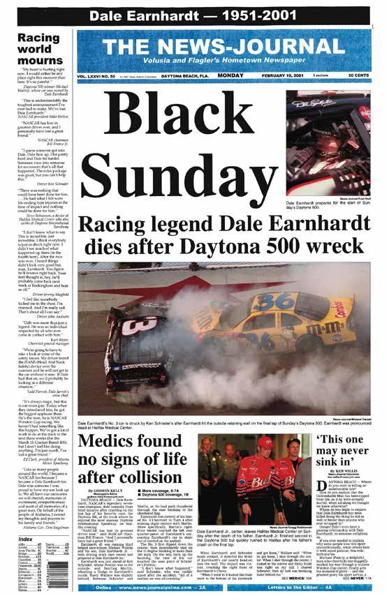 ABOVE LEFT: Rescue crews attempt to extricate Dale Earnhardt after a fatal wreck in Turn 4 on the last lap of the Daytona 500 on Feb. 18, 2001.