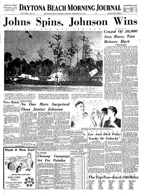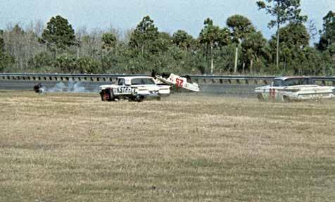 OPPOSITE: Tommy Herbert's tumbling crash down the backstretch in 1960 was the first serious accident in Daytona 500 history. He suffered a broken arm and eye injury.