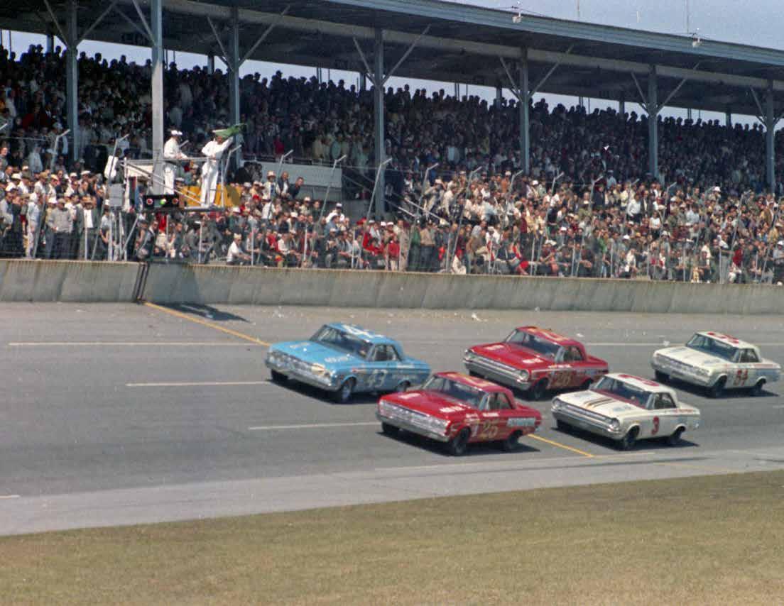 OPPOSITE: Richard Petty (43) started alongside pole winner Paul Goldsmith to start the 1964 Daytona 500.