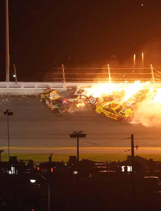 RIGHT: The 2020 Daytona 500 saw rain on Sunday and a fiery finish on Monday night.