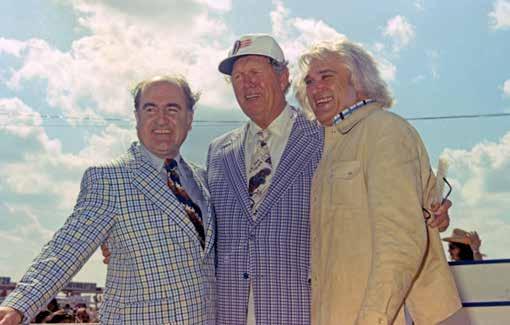 ABOVE: Bill France Sr. is flanked by a pair of Daytona 500 dignitaries before the 1975 race. At left is Argentina's ambassador to the United States, Grand Marshal ALejandro Orfila. At right is country crooner Charlie Rich, the race's honorary starter.
