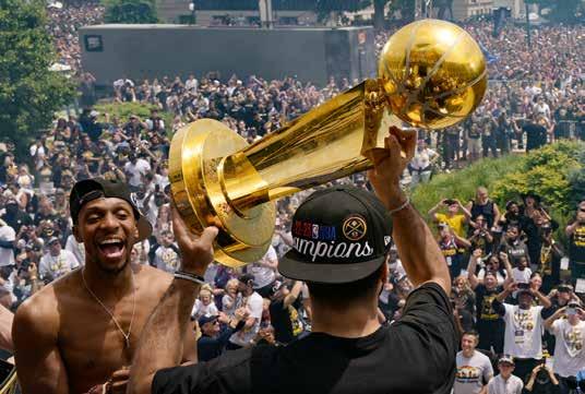 ON THE COVER: NBA commissioner Adam Silver hands the MVP trophy to Nikola Jokic (15) of the Denver Nuggets, who holds his daughter Ognjena, after defeating the Miami Heat 94-89 to win the championship at Ball Arena, June 12, 2023. ANDY CROSS / THE DENVER POST