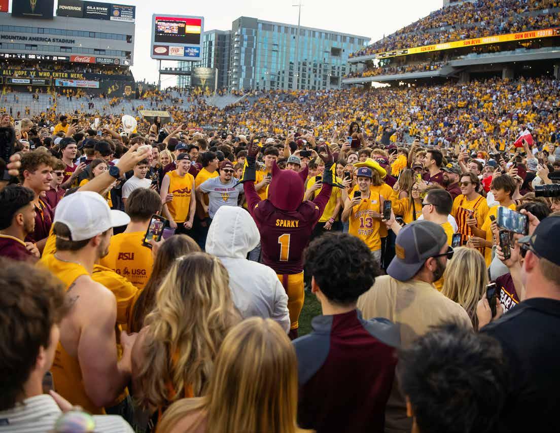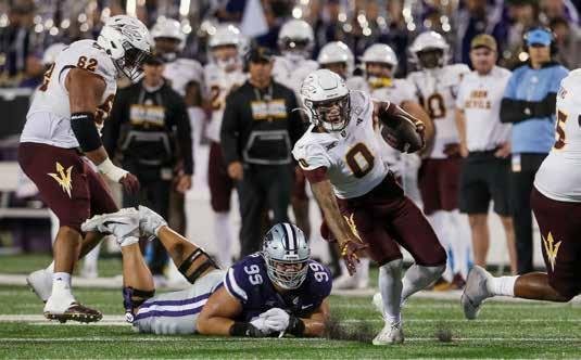 Before a sellout crowd at Mountain America Stadium, the Sun Devils won a Big 12 game for the first time, 3531 over Kansas. To do so, they scored touchdowns on all three of their fourth-quarter possessions, each time