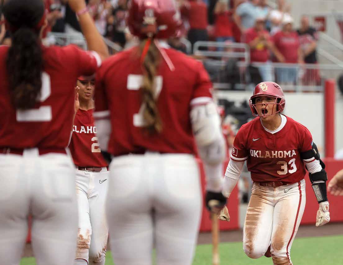 FRONT COVER: Oklahoma players celebrate after winning Game 2 of the Women’s College World Series Championship Series between the Oklahoma Sooners and Texas Longhorns at Devon Park in Oklahoma City, June 6, 2024. Oklahoma won 8-4. BRYAN TERRY / THE OKLAHOMAN