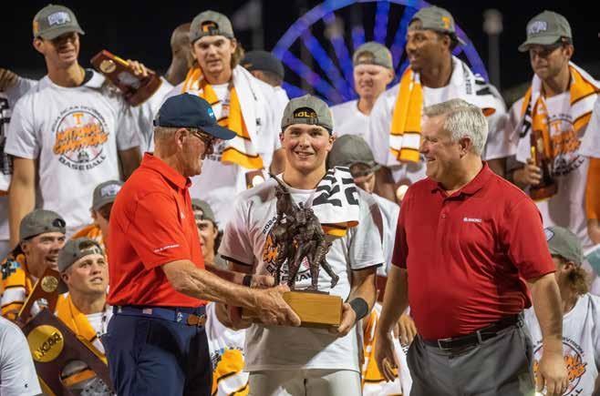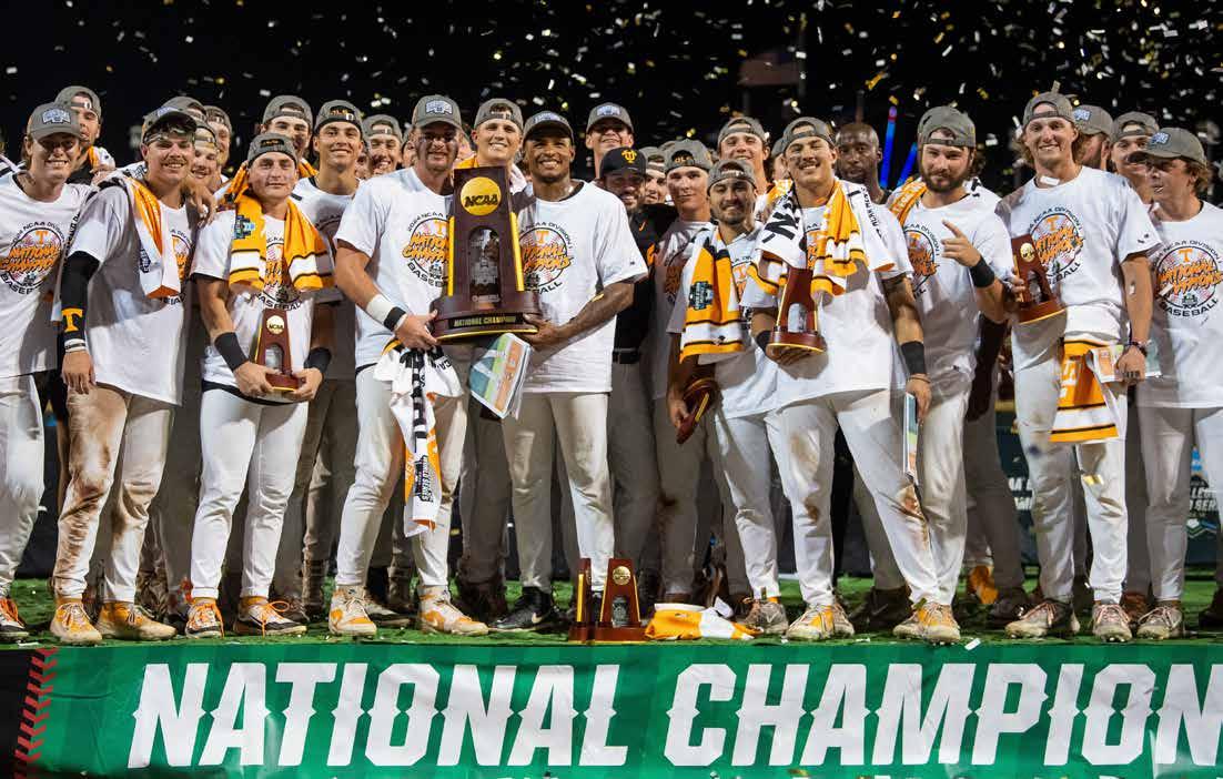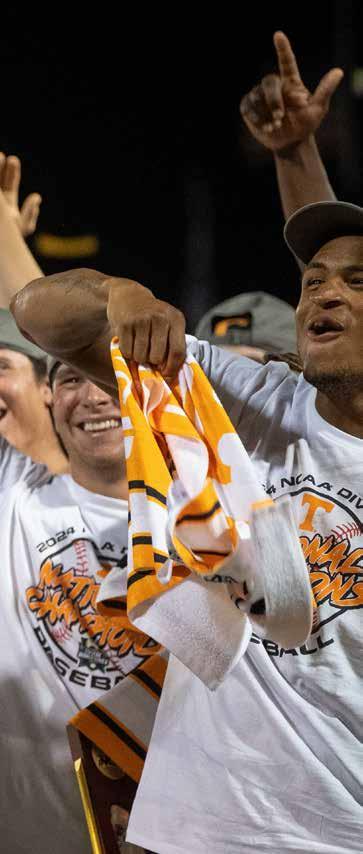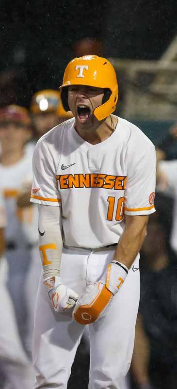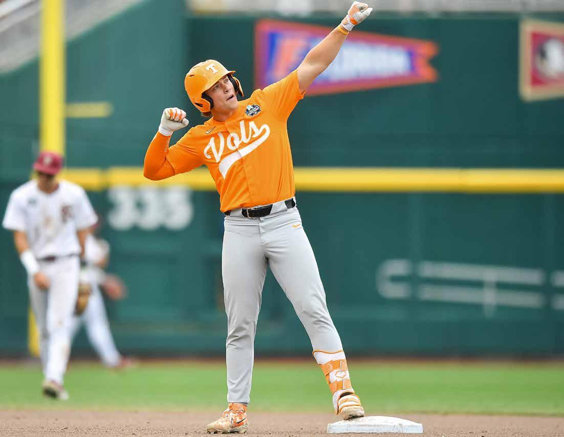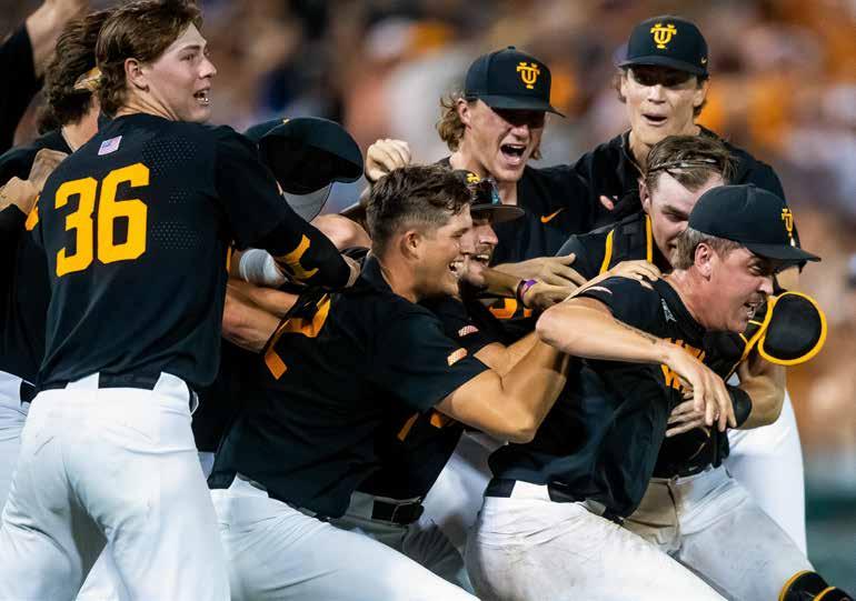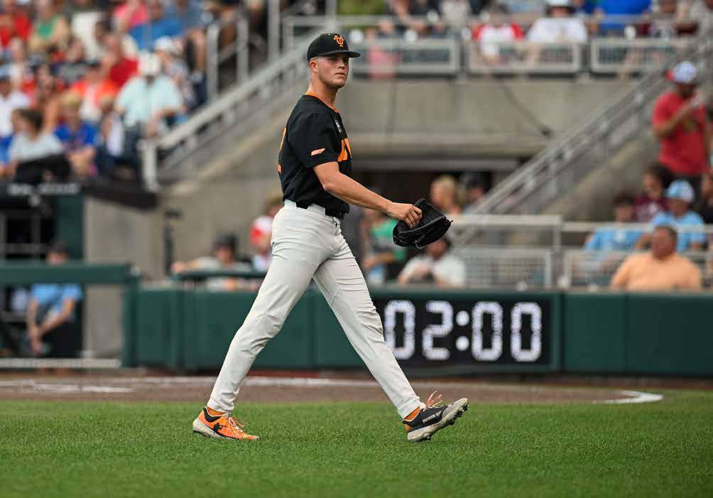 Well, if the doubters were circling, they were feasting on the start of the 2023 team. A 5–10 start to SEC play had Tennessee on the outside looking in for NCAA regional predictions. What this program was made of was officially in question. The response was swift and decisive. A three-game sweep of Vandy answered all the doubts and propelled the Vols on a season-anda-half stretch that has cemented them as a standard bearer in the sport. The 2023 team found its stride and rode the momentum to road regional and super regional victories that sent Tennessee back to Omaha for the second time in three years. The Vols went 1–2 at the CWS, but the group of returning players were clearly set up to hunt for everything in 2024.