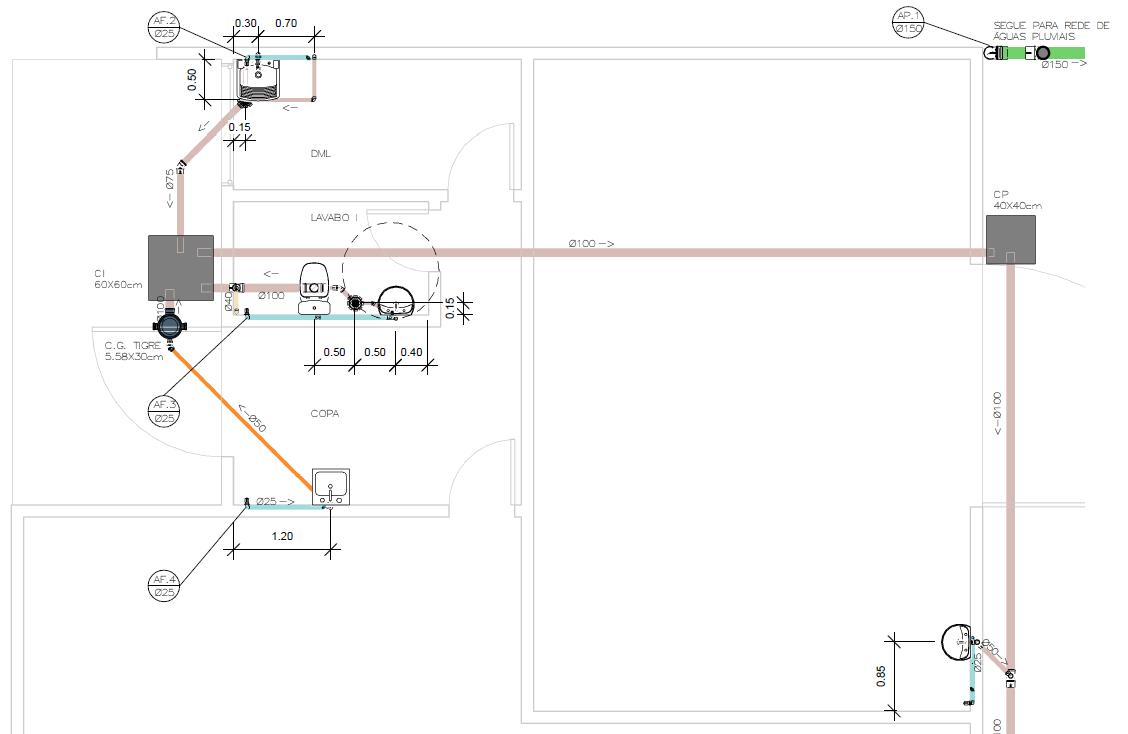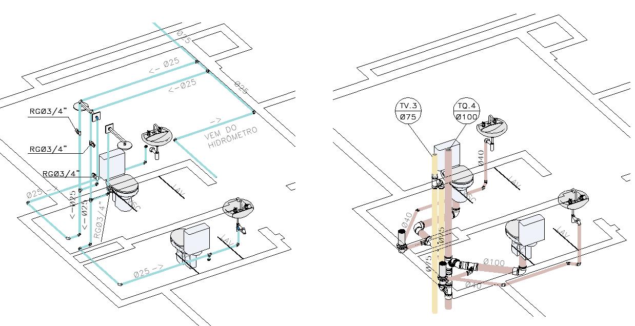 Recebida em .DWG, com modelagem própria para o desenvolvimento do projeto hidráulico