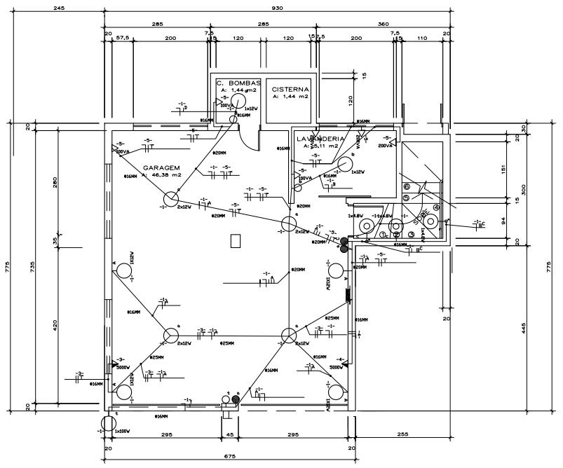 Projeto elétrico, residência unifamiliar de dois pavimentos com 170,00m²