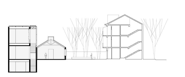 08-09. assim como no conjunto da pólvora, respeita-se a orientação espacial absoluta norte-sul, leste-oeste, como forma de orientação e contraste com o volume preexistente.