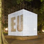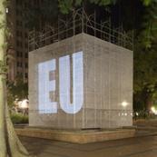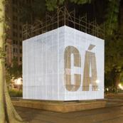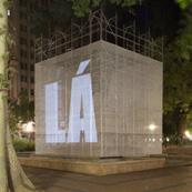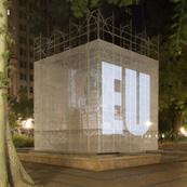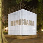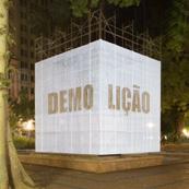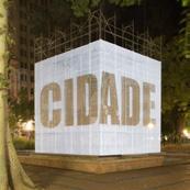 O cubo branco - figura de linguagem para a sala de exposições - confere sua qualidade neutra, passiva e receptora de sentidos, deslocado e inserido aqui no foco cívico da Praça, convidativo e permissivo à imaginação e à projeção de imagens subjetivas sobre o prisma platônico flutuante, elevado em Praça pública.