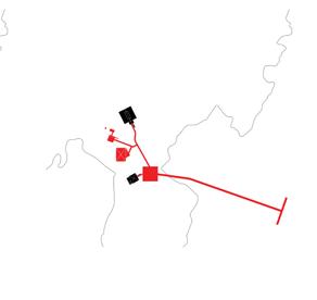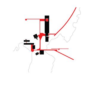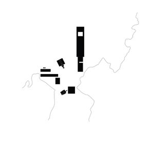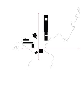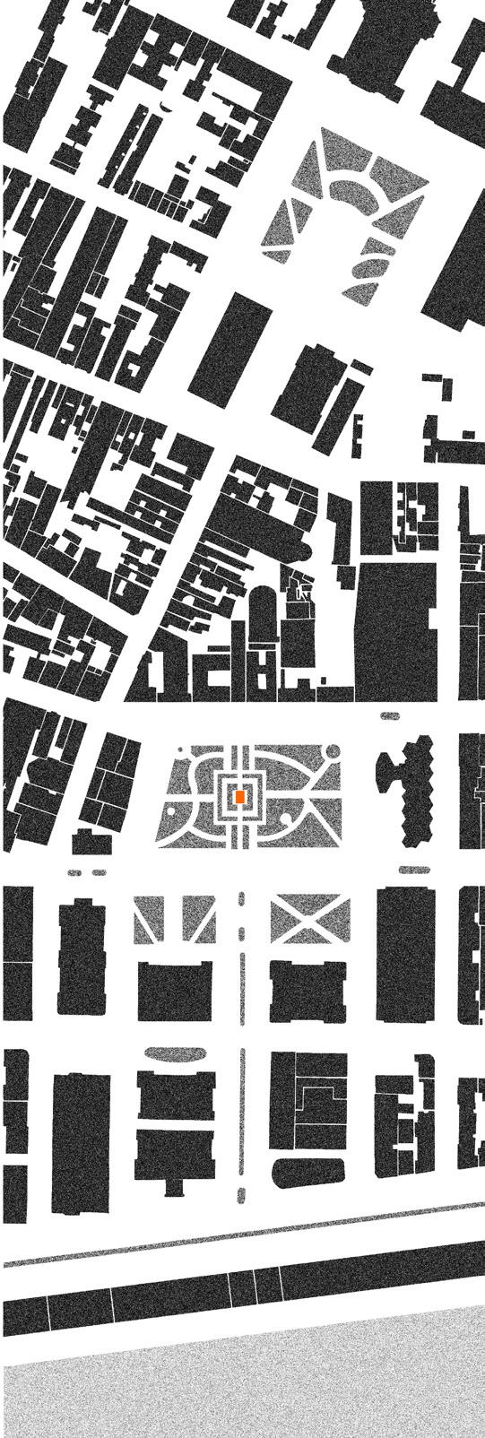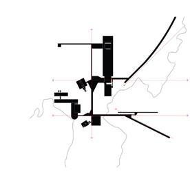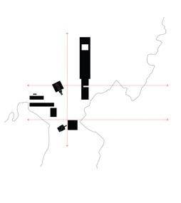 10-11. a implantação se dá de forma cartesiana nos eixos norte e sul, leste e oeste, tanto para auxiliar na orientação em um sítio pouco conhecido, assim como forma de se contrapor às edificações preexistentes.