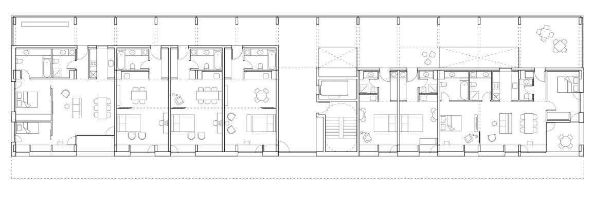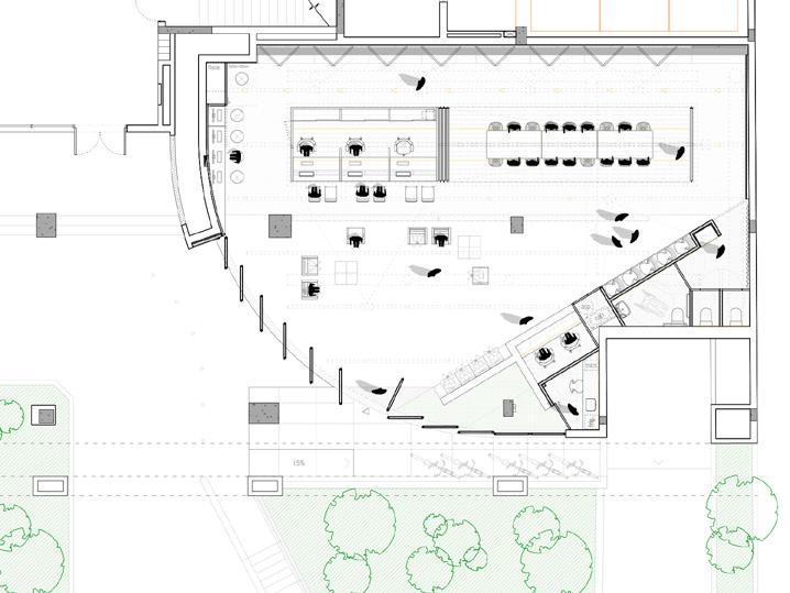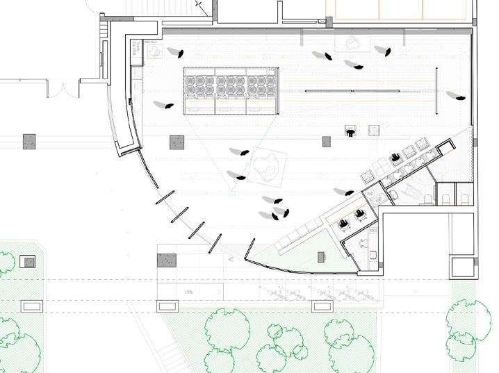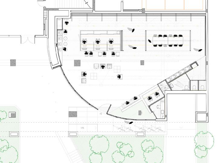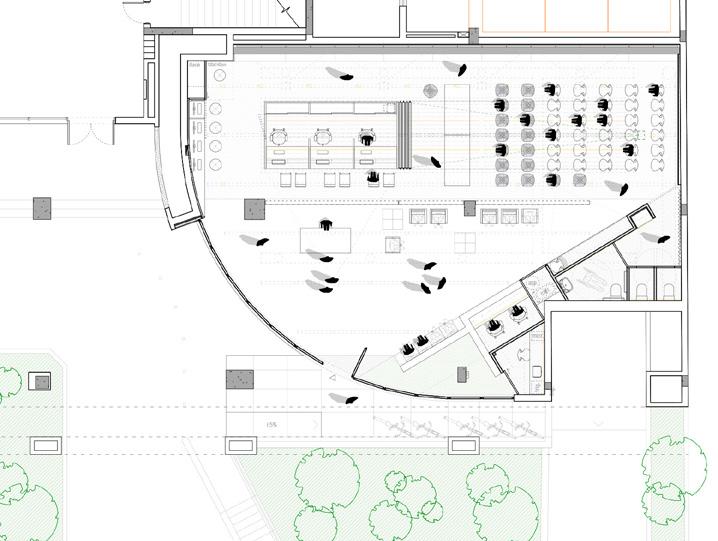 03. adequações à intervenção proposta: aproveitamento das melhorias estruturais na edificação preexistente, porém são removidos o volume anexo da copa e as divisórias internas.