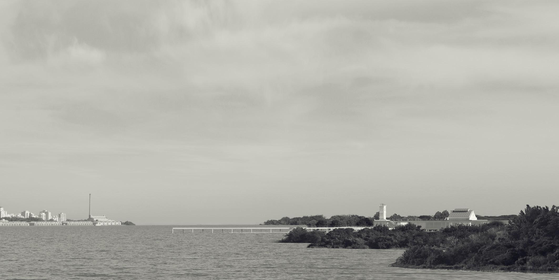 vista do acesso fluvial ao conjunto de edificações do museu