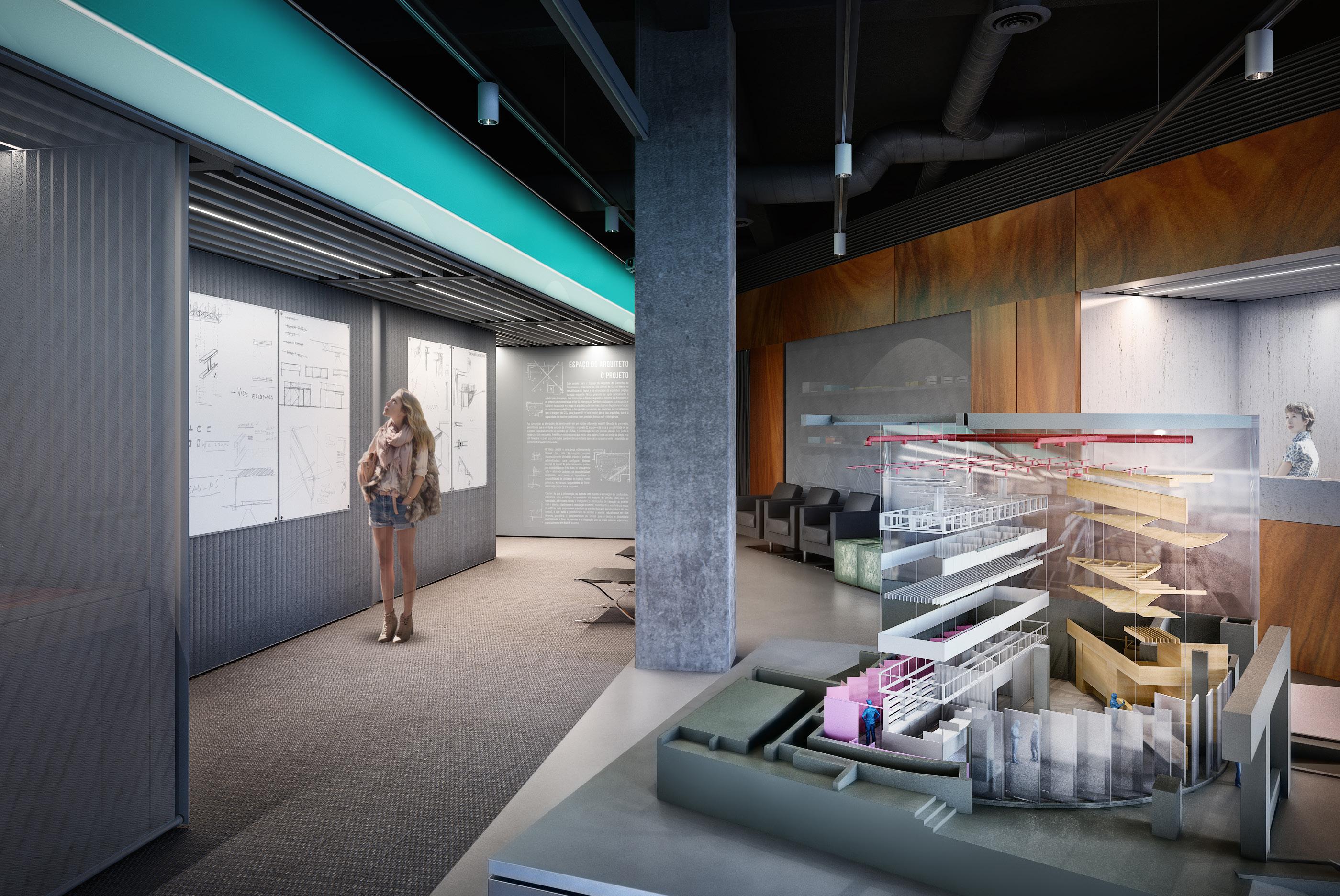 quando o salão para eventos temporários não está em uso, ele se integra aos ambientes expositivos naturalmente.