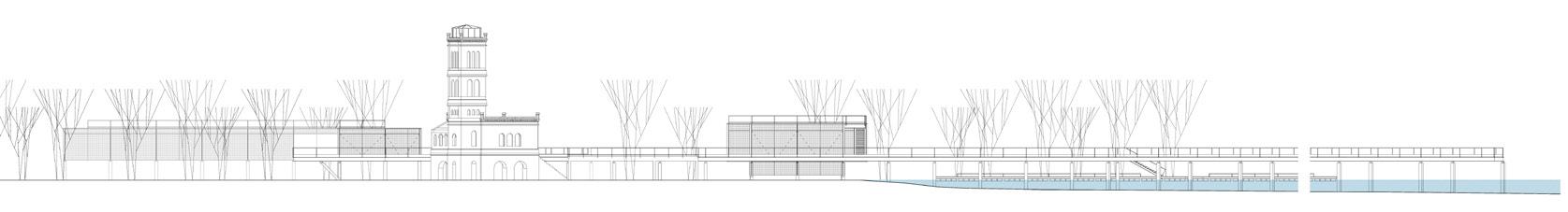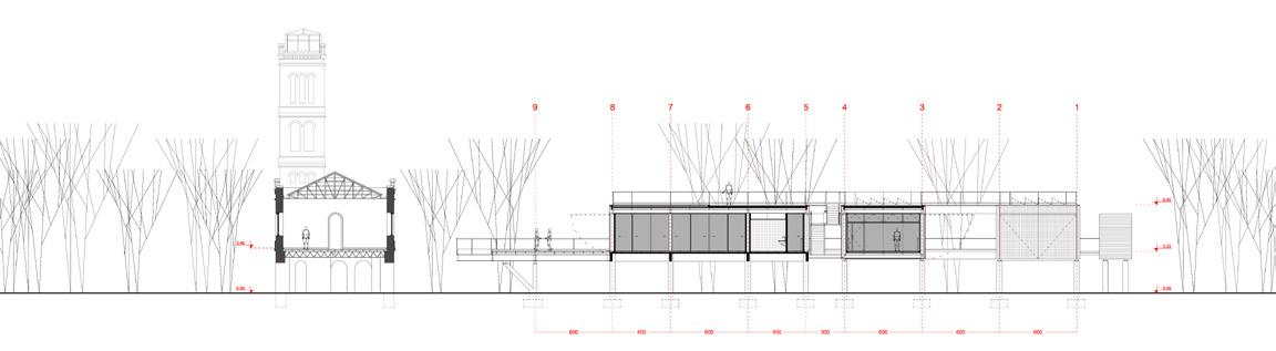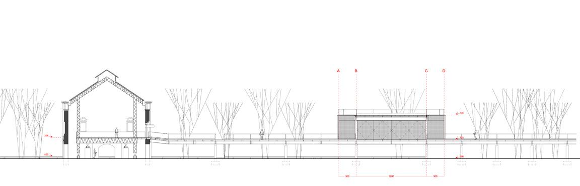 04-05. adequações à intervenção proposta: preservação da laje, palafitas e fundações em concreto armado da unidade de apoio, assim como da praça elevada. remoção das trilhas em madeira, em péssimo estado de conservação, e das paredes de alvenaria da unidade de apoio, para mudança de programa.