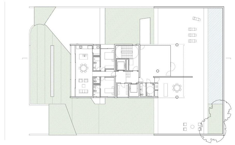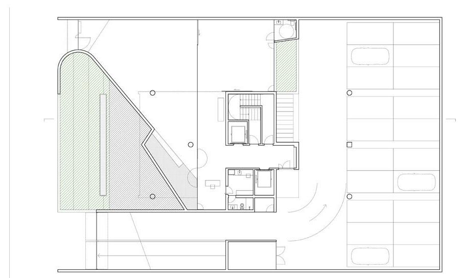 03. adequações à intervenção proposta: aproveitamento das melhorias estruturais na edificação preexistente, porém são removidos o volume anexo da copa e as divisórias internas.