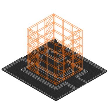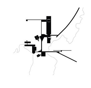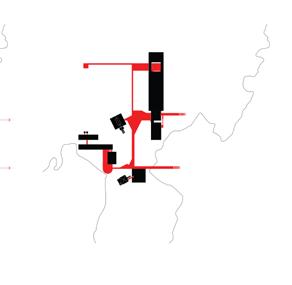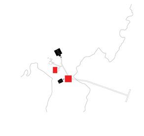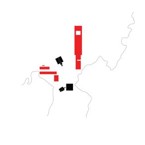 10-11. a implantação se dá de forma cartesiana nos eixos norte e sul, leste e oeste, tanto para auxiliar na orientação em um sítio pouco conhecido, assim como forma de se contrapor às edificações preexistentes.