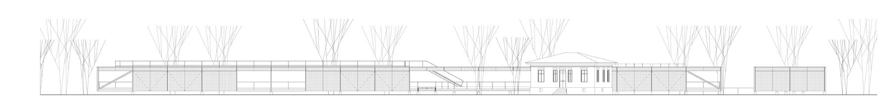 02. situação posterior à reforma do pró-guaíba: recuperação da cobertura, fachadas e interiores. adequação para uso como laboratório de pesquisas do bioma: para tanto são construídas divisórias internas em alvenaria e um volume anexo funcionando como copa de apoio.